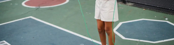 Двойные прыжки на скакалке лучше начинать с разминки — с классических одинарных прыжков. Затем постепенно можно наращивать интенсивность и менять темп.