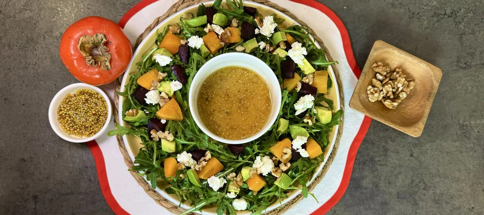 Салат со свеклой, хурмой и творожным сыром