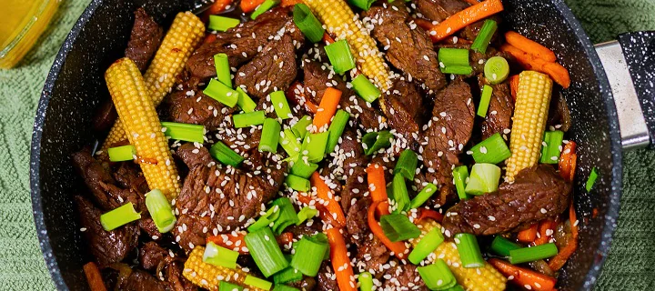 Затем разогрейте масло в воке или сковороде на среднем огне. Добавьте маринованную говядину в один слой и готовьте, периодически помешивая, до равномерного золотисто-коричневого цвета. Посолите и поперчите по вкусу.